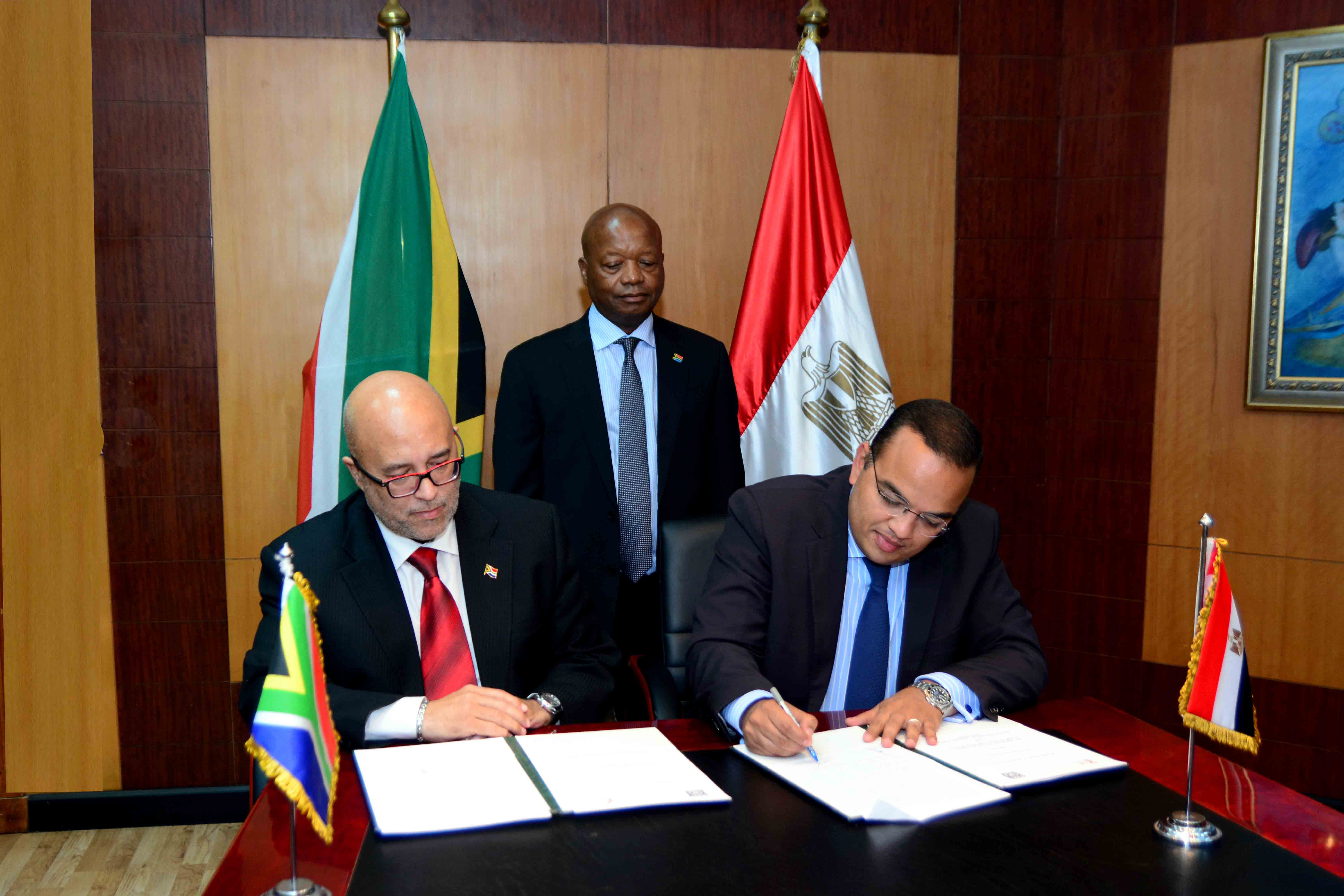 وقع مذكرة التفاهم رئيس هيئه الاستثمار ا. محمد خضير ونظيره الجنوب افريقي السفير صادق جعفر وذلك بحضور سفير جنوب افريقيا بالقاهرة، فوزي مافيمبلا وممثل وزارة الصناعة والتجارة في جنوب افريقيا، ثابيزو موسي و ممثلي وزارة التجارة والصناعة المصرية.